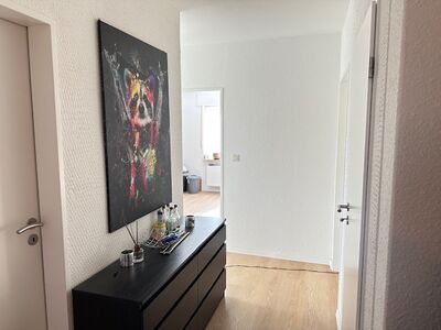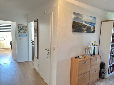 Ein Wohnzimmer, zwei Schlafzimmer, ein Duschbad mit WC und einen Flur.